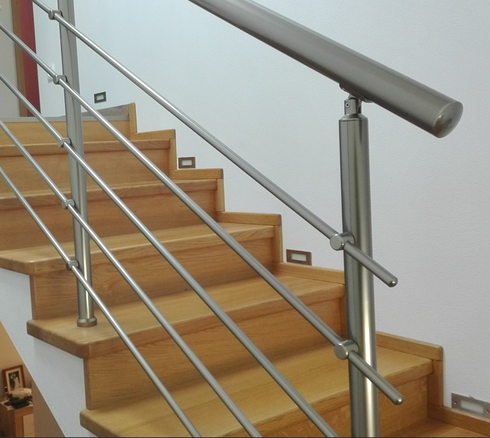 Stavebnicové hliníkové zábradlie s 5 vodorovnými priečkami a bočným kotvením je možné inštalovať ako v interiéri, tak aj v exteriéri a je vhodné na vodorovné plochy ako terasy, balkóny, lodžie a tiež na šikmé schodiská vďaka uhlovo nastaviteľným komponentom.